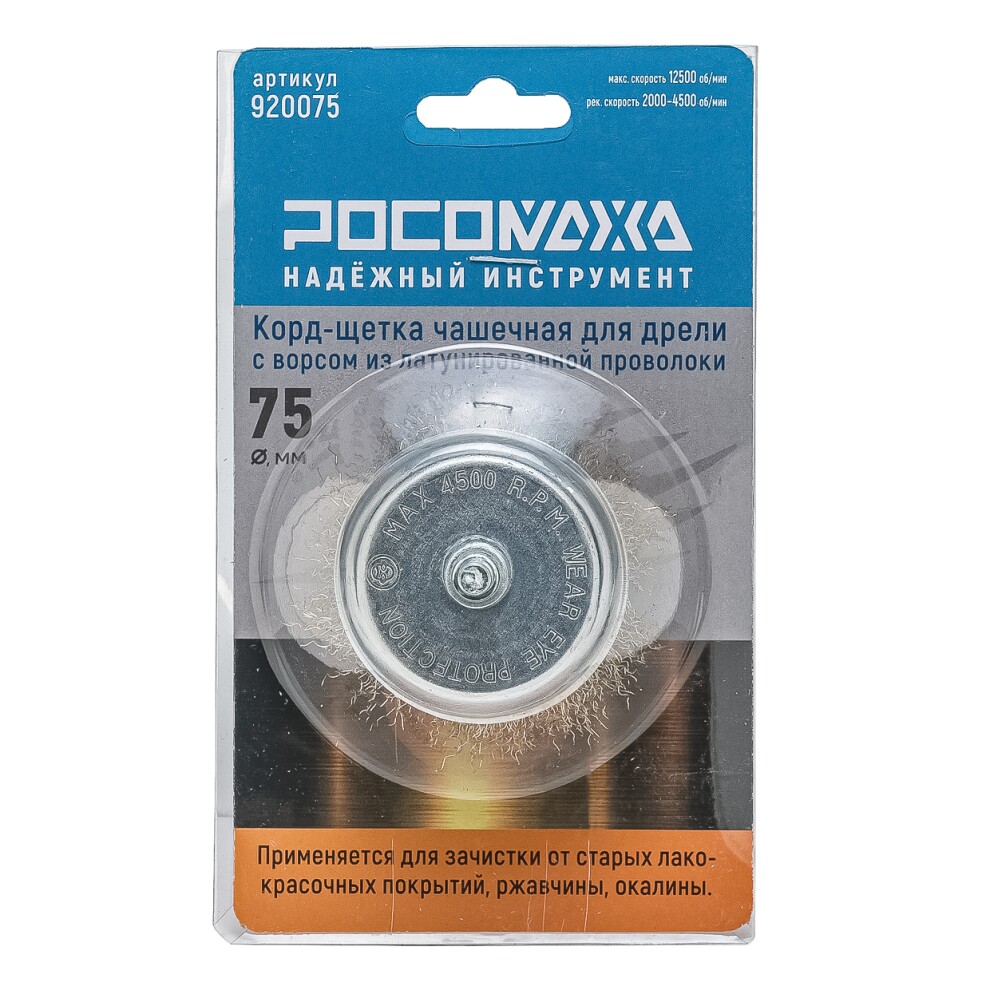 Корд-щетка чашечная для дрели с ворсом из латун. волнистой проволоки 75 мм "РОСОМАХА"