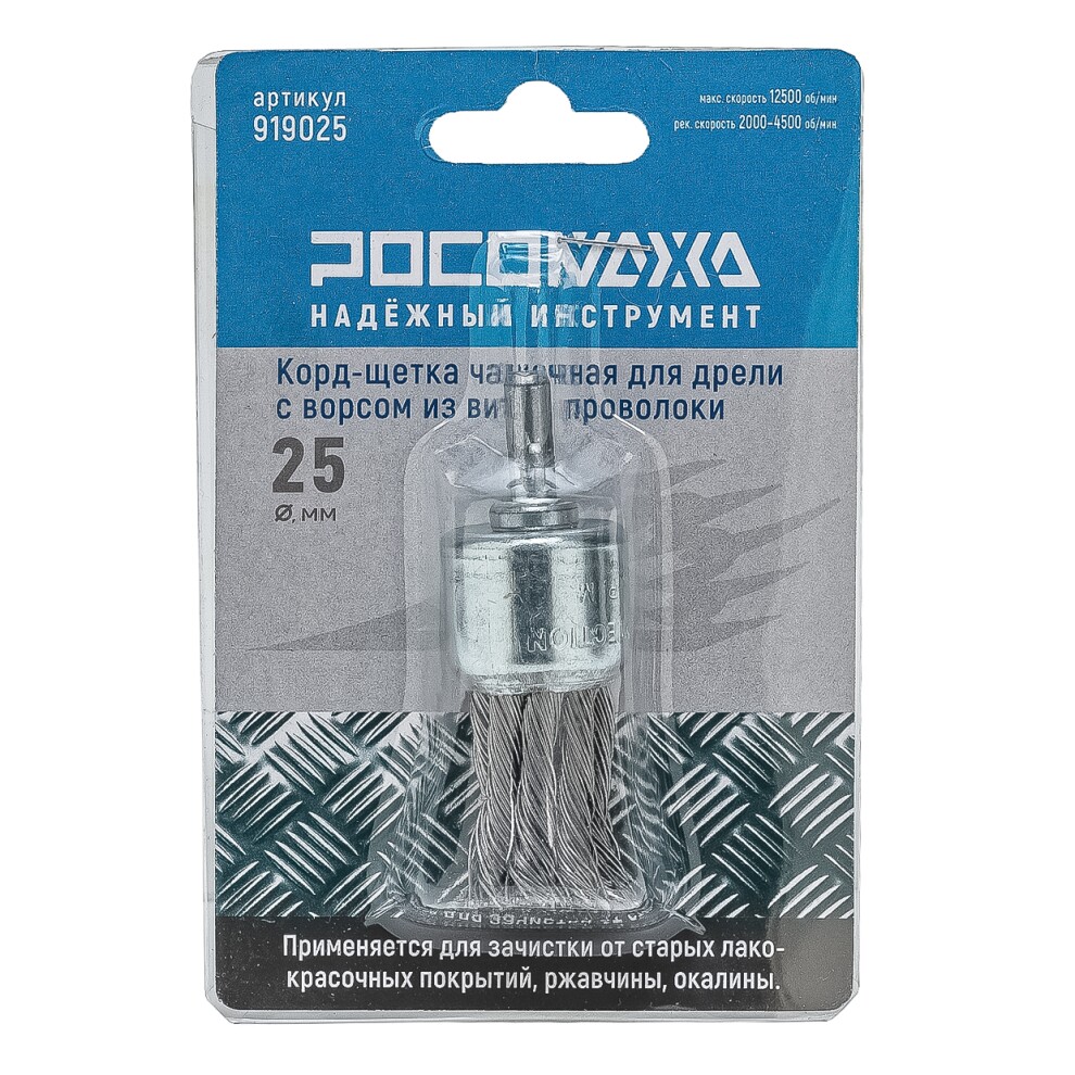 Корд-щетка чашечная для дрели с ворсом из витой проволоки 25 мм "РОСОМАХА"