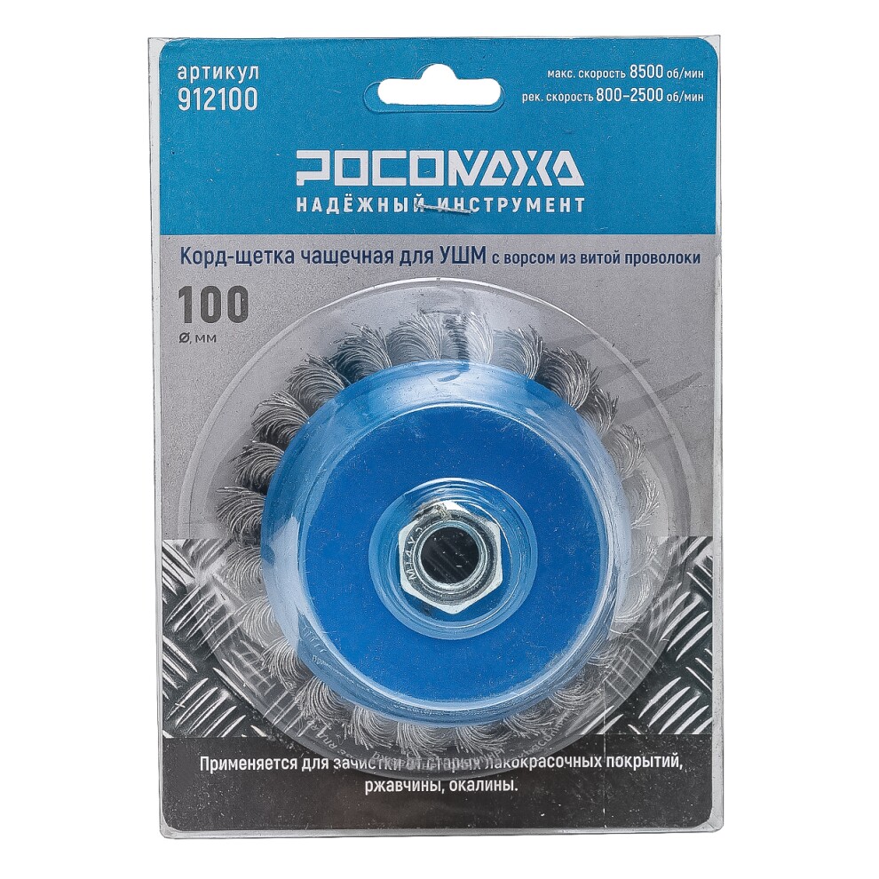 Корд-щетки «РОСОМАХА» используется для шлифовальных и обдирочных работ. Идеальны для удаления застарелых лакокрасочных покрытий, въевшейся грязи, ржавчины, окалины с поверхностей стальных изделий. Рабочая поверхность щетки — витая стальная проволока.