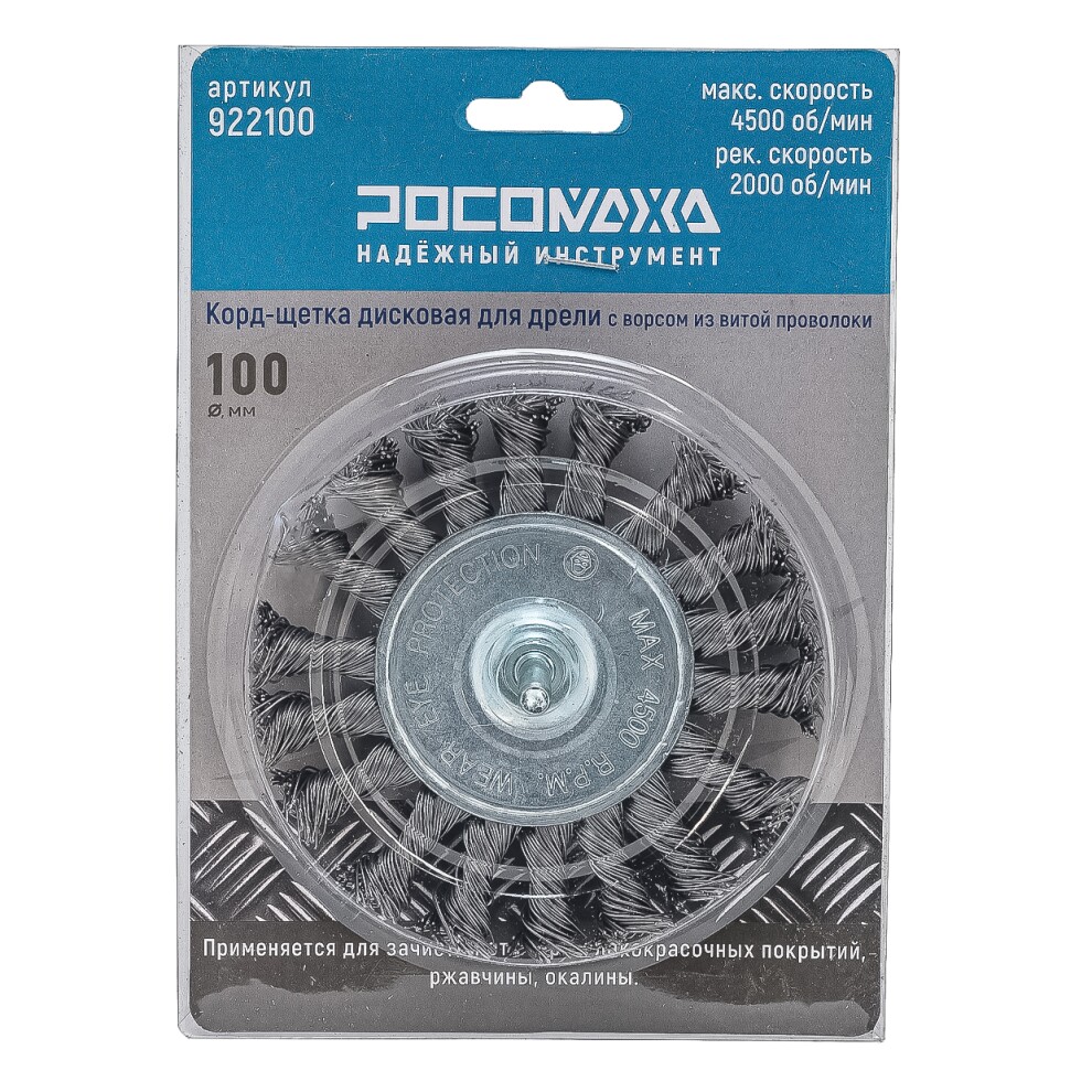 Корд-щетка дисковая для дрели с ворсом из витой проволоки 100 мм "РОСОМАХА"