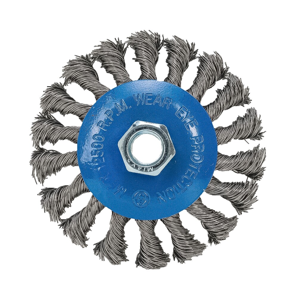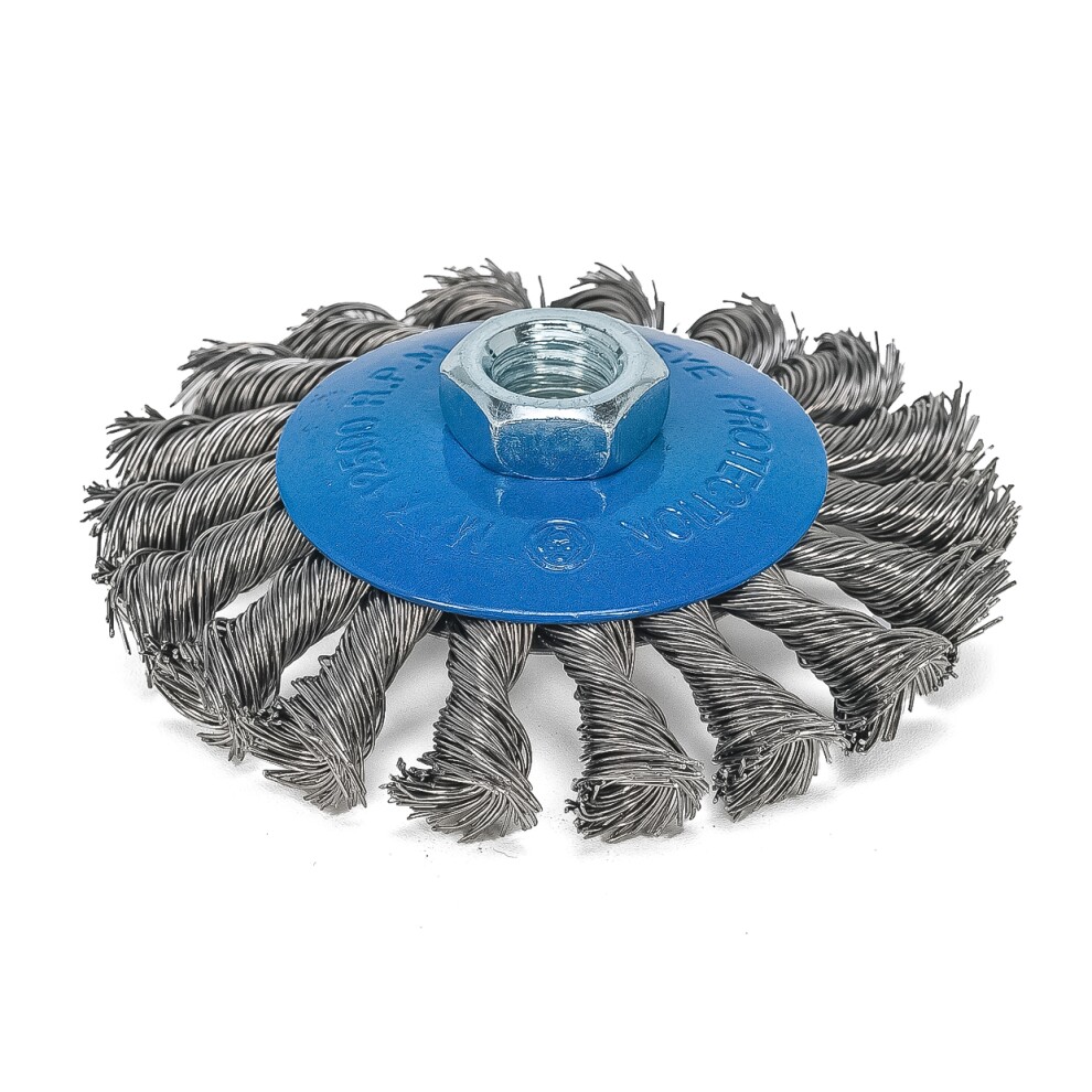 Корд-щетка дисковая наклонная для УШМ (М14; 100 мм) с ворсом из витой проволоки "РОСОМАХА"