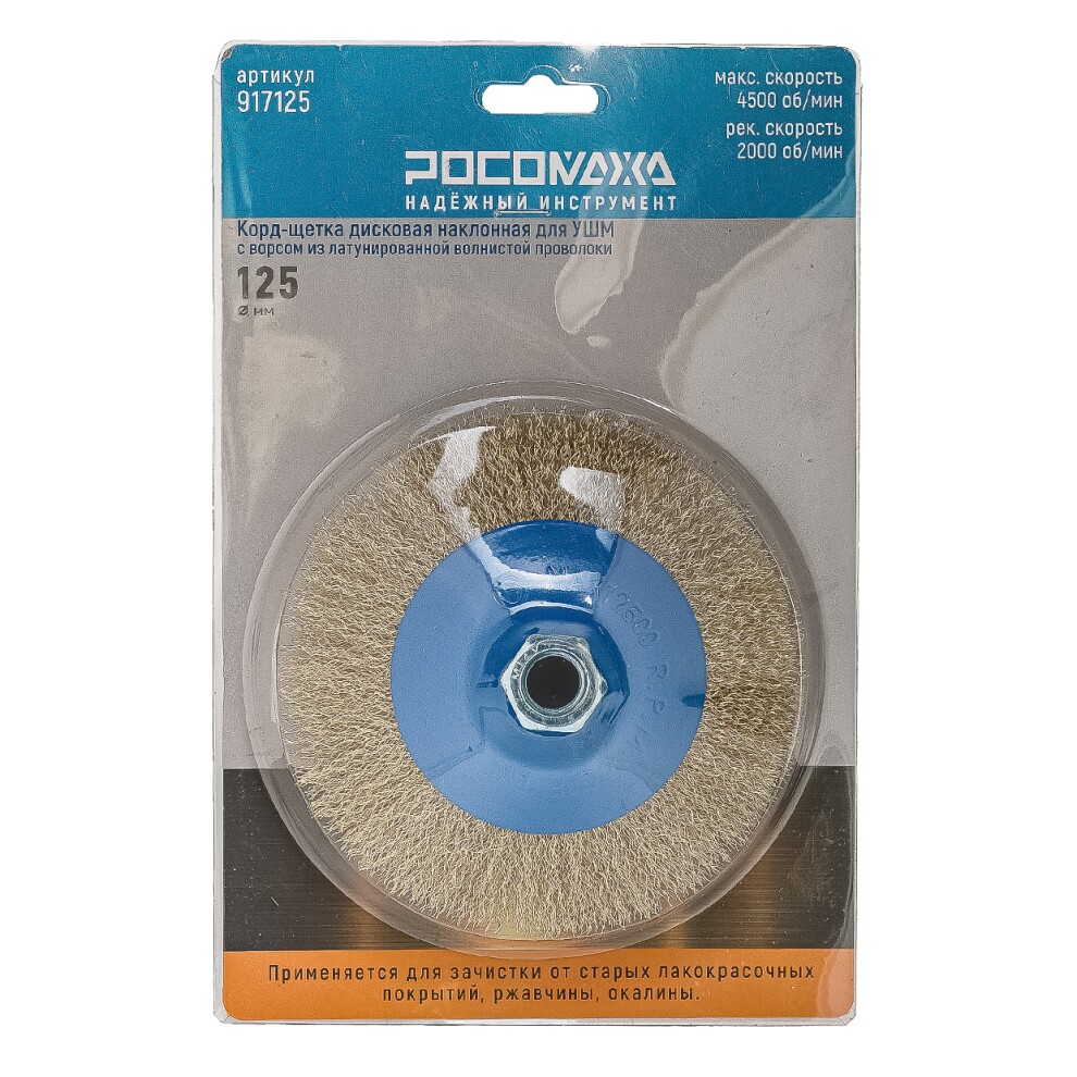 Корд-щетки «РОСОМАХА» применяется для средних и легких зачистных работ по изделиям из черной стали. Выполняет мягкую зачистку, благодаря волнистой латунированной проволоке. Предназначена в основном для обработки металлических изделий из с большими плоскими поверхностями, снятие старой краски, окалины, ржавчины и подобных работ.