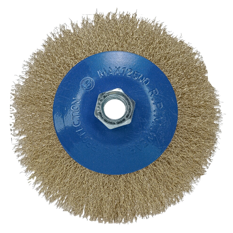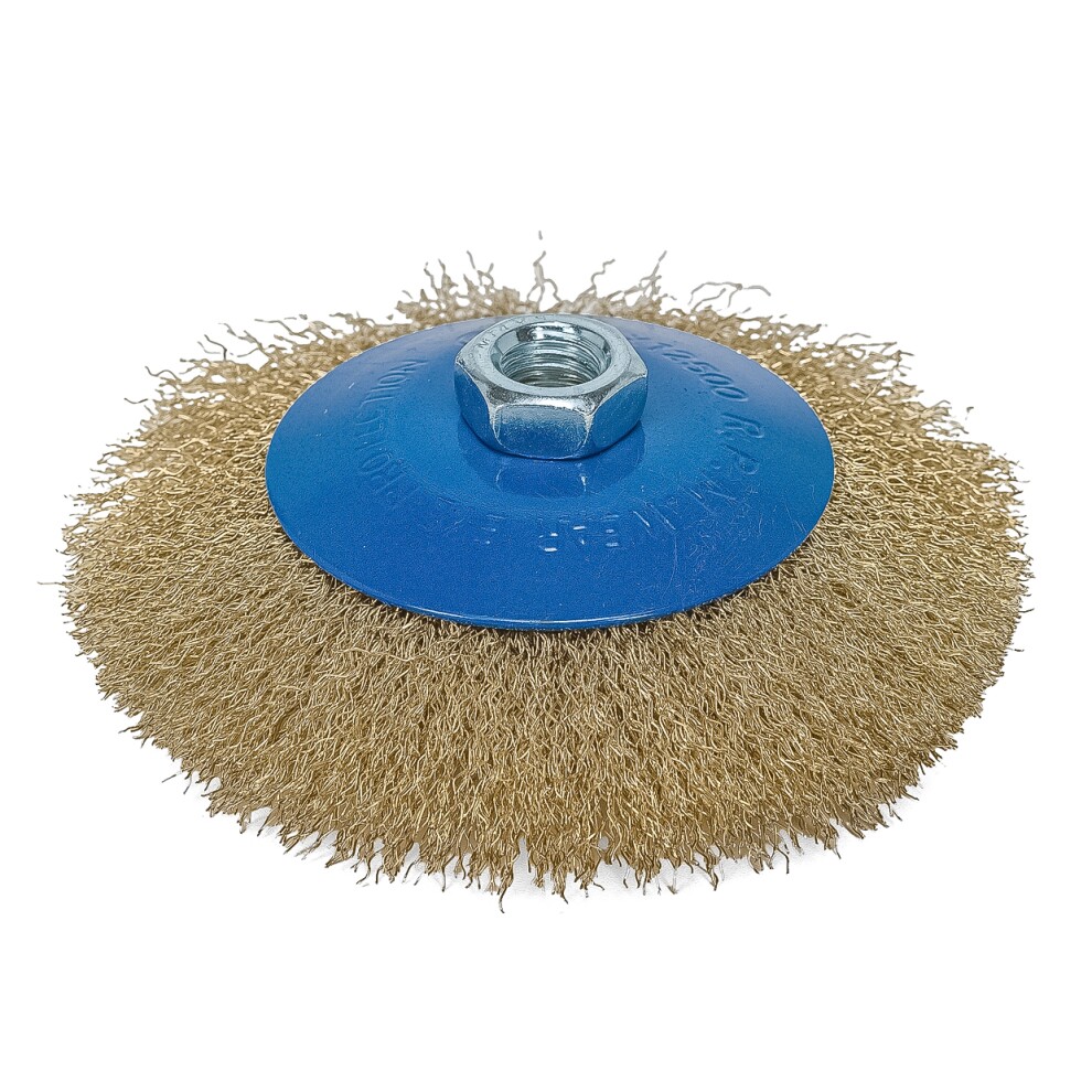 Корд-щетка дисковая наклонная для УШМ (М14; 125 мм) с ворсом из латун. волнистой проволоки "РОСОМАХА"