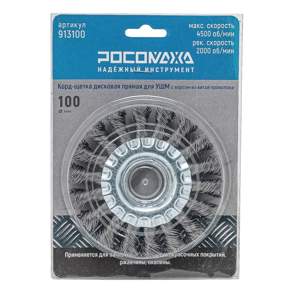Корд-щетка дисковая прямая для УШМ (22,23 мм; 100 мм) с ворсом из витой проволоки "РОСОМАХА"