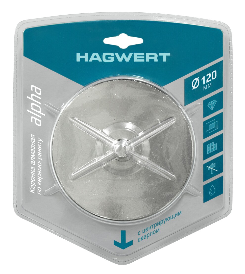 Коронка алмазная с центрирующим сверлом по керамограниту и керамике 120мм "Hagwert"