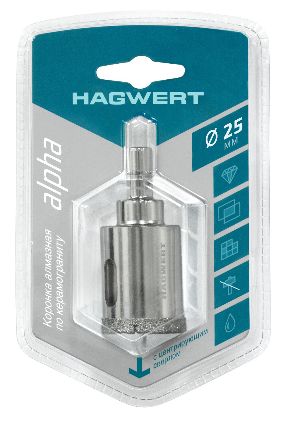 Коронка алмазная с центрирующим сверлом по керамограниту и керамике 20мм "Hagwert"