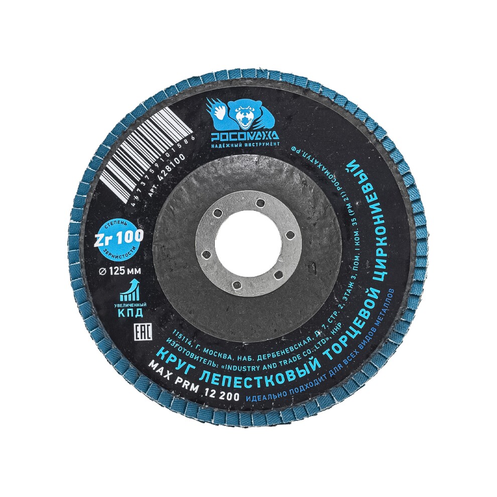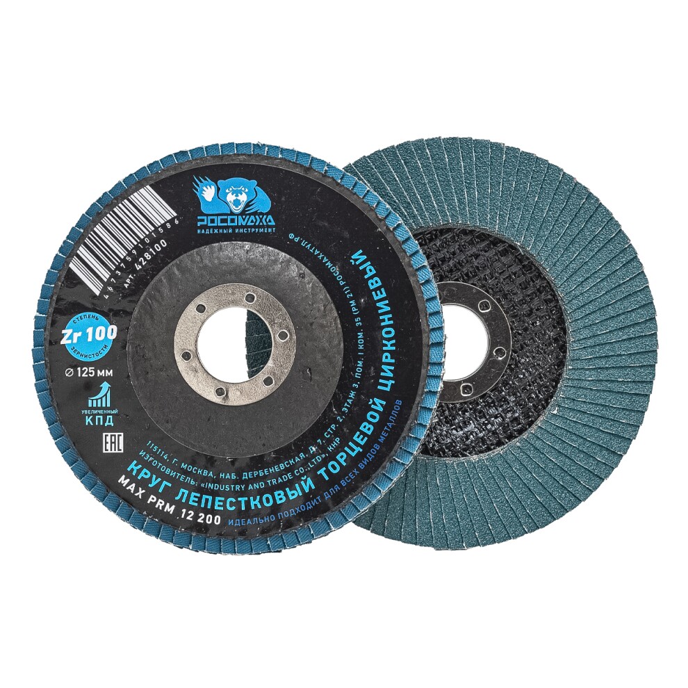 Круг лепестковый торцевой по металлу, циркониевый 125*22,2 мм зерно 100 "РОСОМАХА"