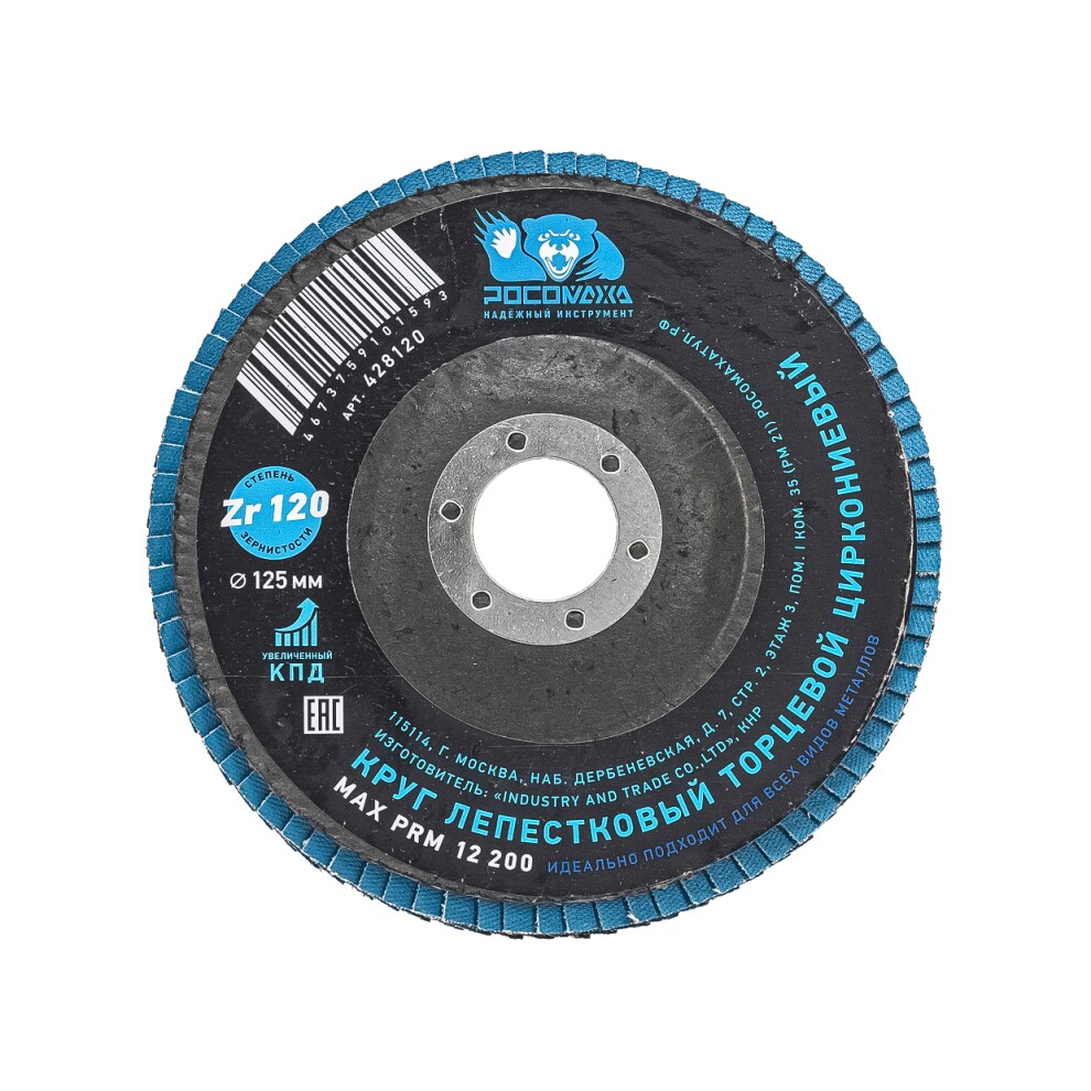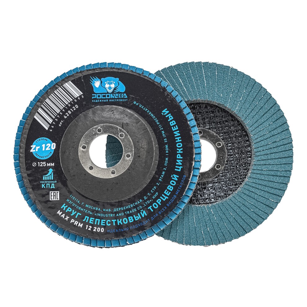 Круг лепестковый торцевой по металлу, циркониевый 125*22,2 мм зерно 120 "РОСОМАХА"