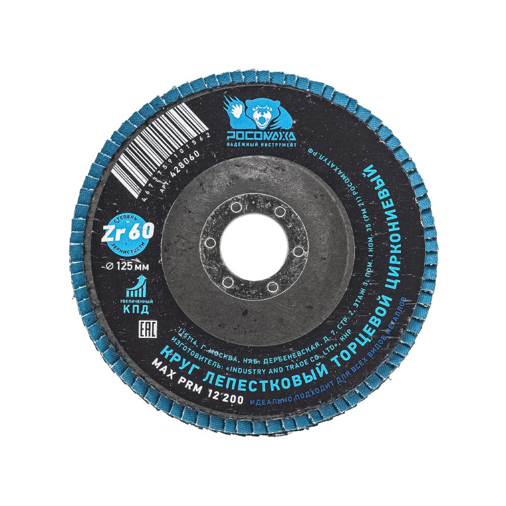 Круг лепестковый торцевой по металлу, циркониевый 125*22,2 мм зерно 60 "РОСОМАХА"