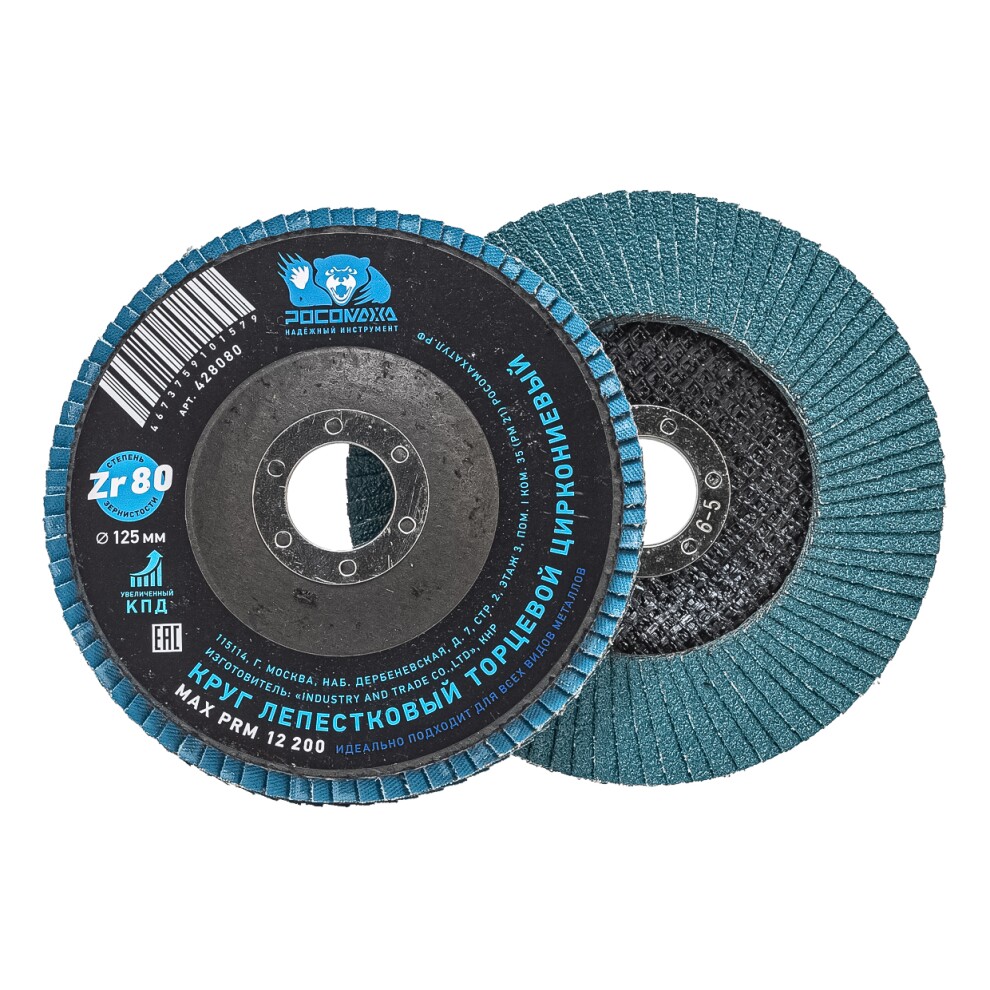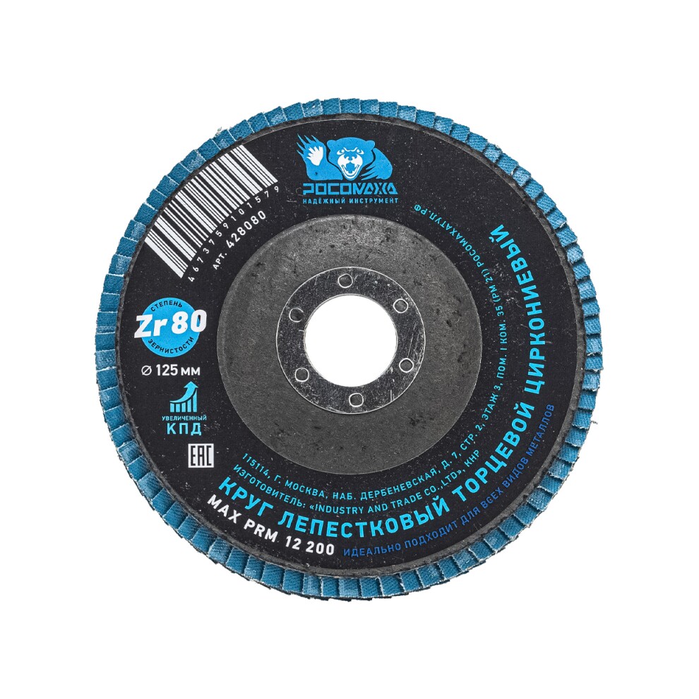 Круг лепестковый торцевой по металлу, циркониевый 125*22,2 мм зерно 80 "РОСОМАХА"