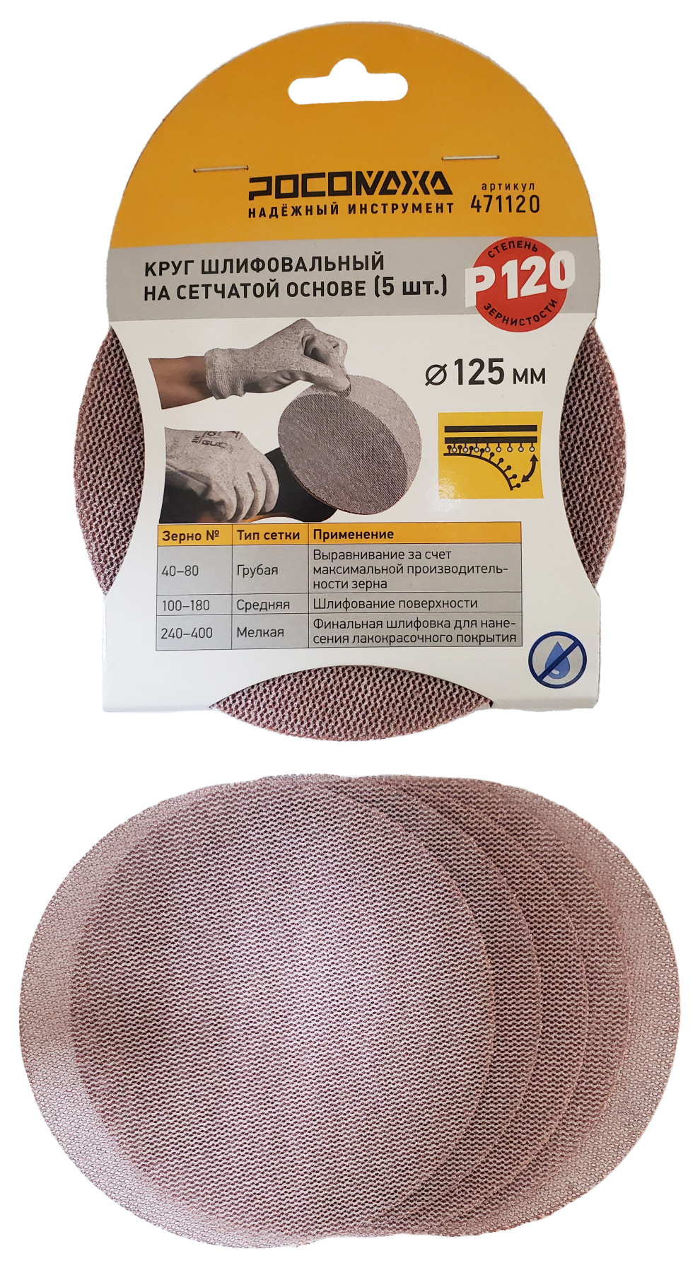 Круг шлифовальный на сетчатой основе (5 шт; 125 мм; P 120) "РОСОМАХА"