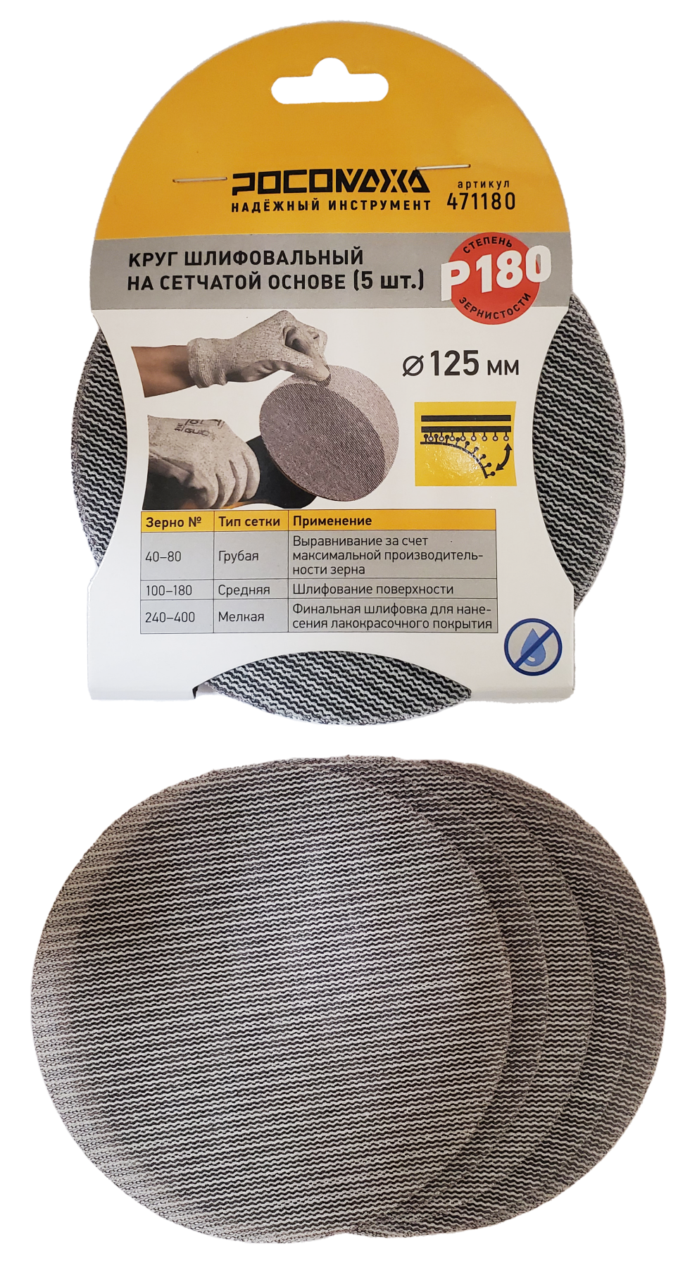 Круг шлифовальный на сетчатой основе (5 шт; 125 мм; P 180) "РОСОМАХА"
