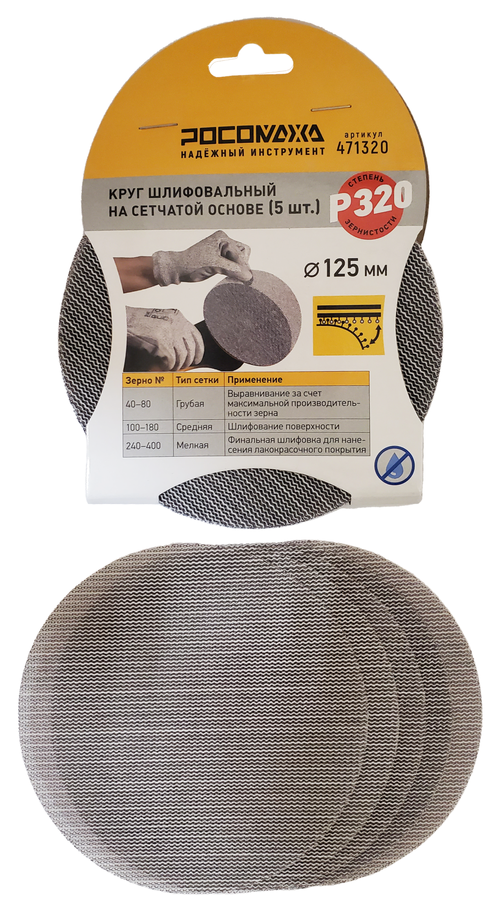 Круг шлифовальный на сетчатой основе (5 шт; 125 мм; P 320) "РОСОМАХА"