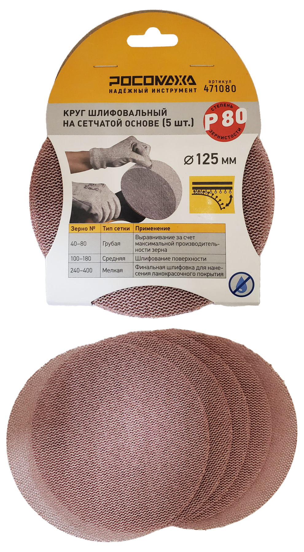 Круг шлифовальный на сетчатой основе (5 шт; 125 мм; P 80) "РОСОМАХА"