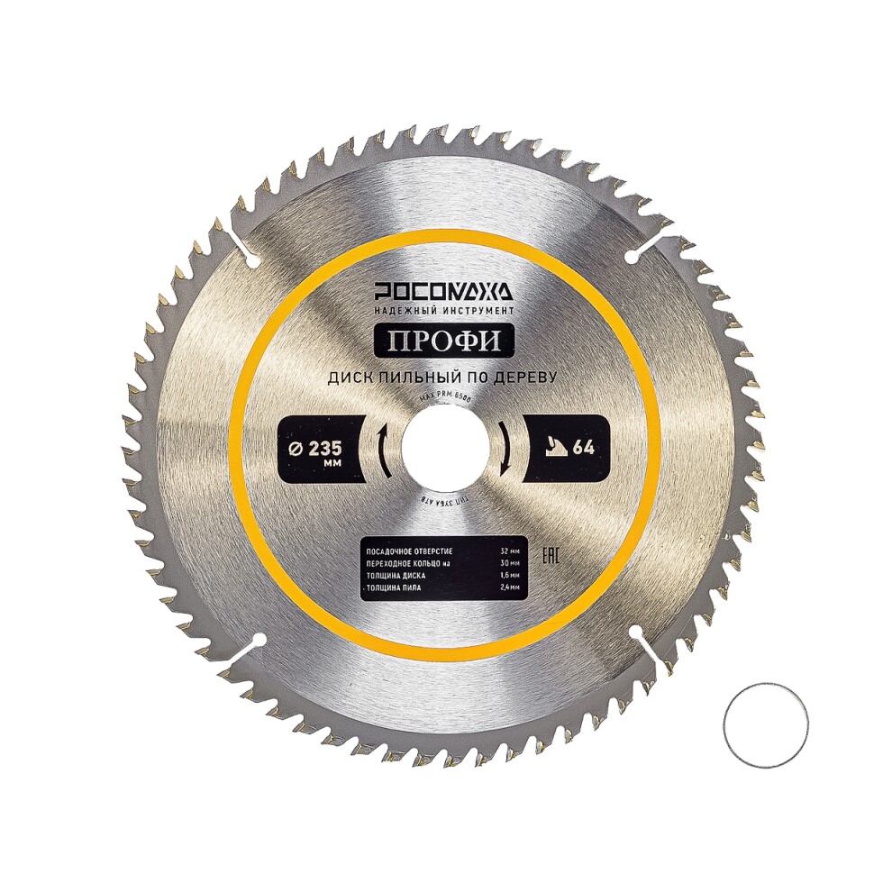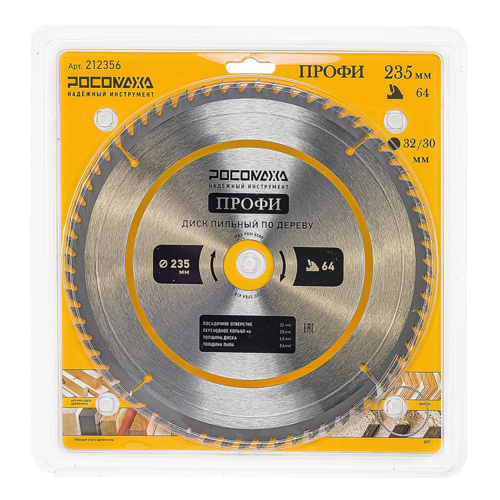 Пильный диск по дереву 235 мм ПРОФИ (64Т; 32/30 мм) "РОСОМАХА"