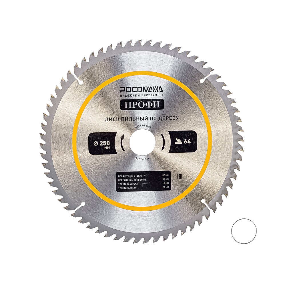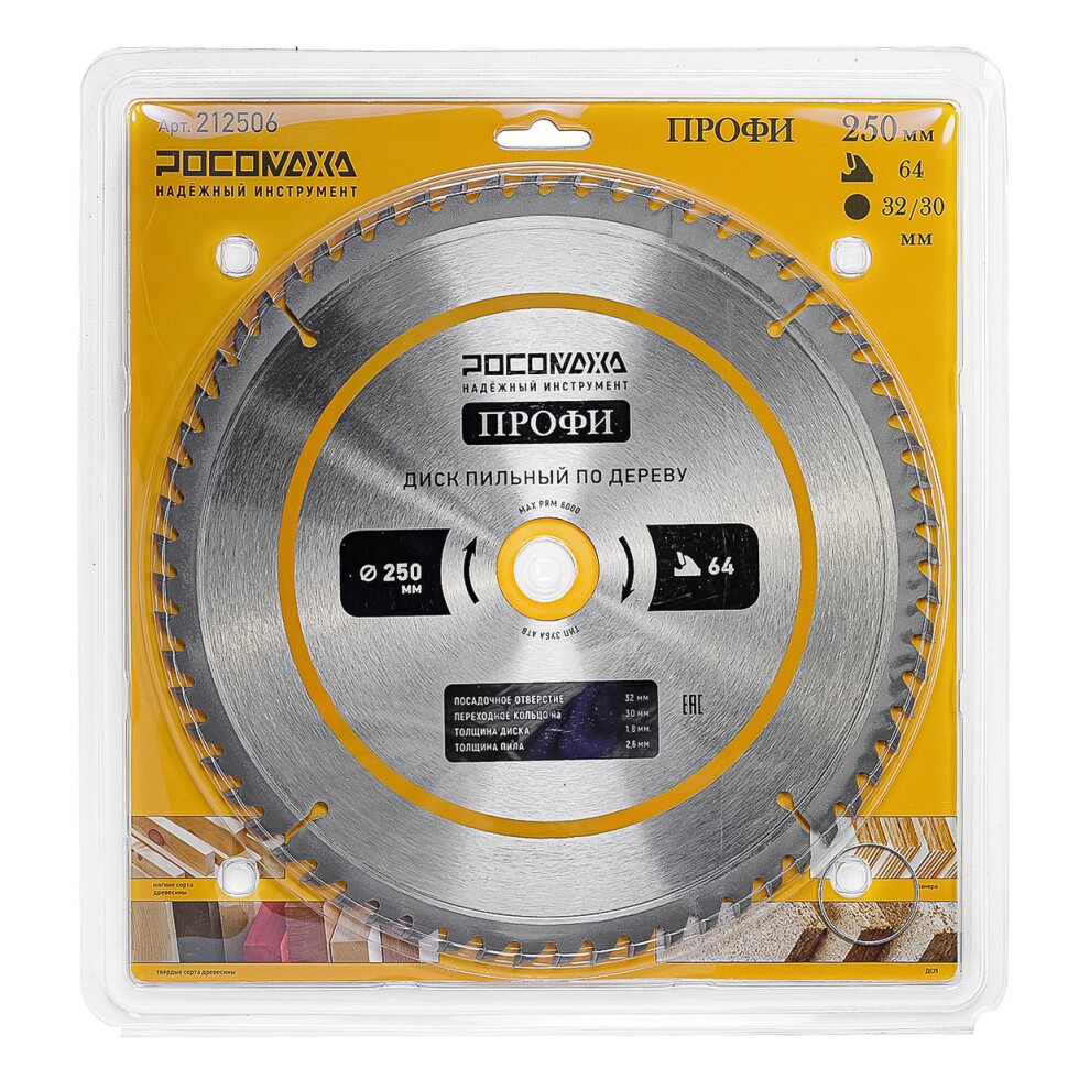 Пильный диск по дереву 250 мм ПРОФИ (64Т; 32/30 мм) "РОСОМАХА"