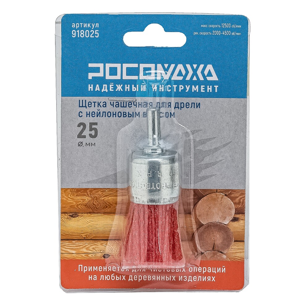Щетка чашечная для дрели 25 мм с нейлоновым ворсом "РОСОМАХА"