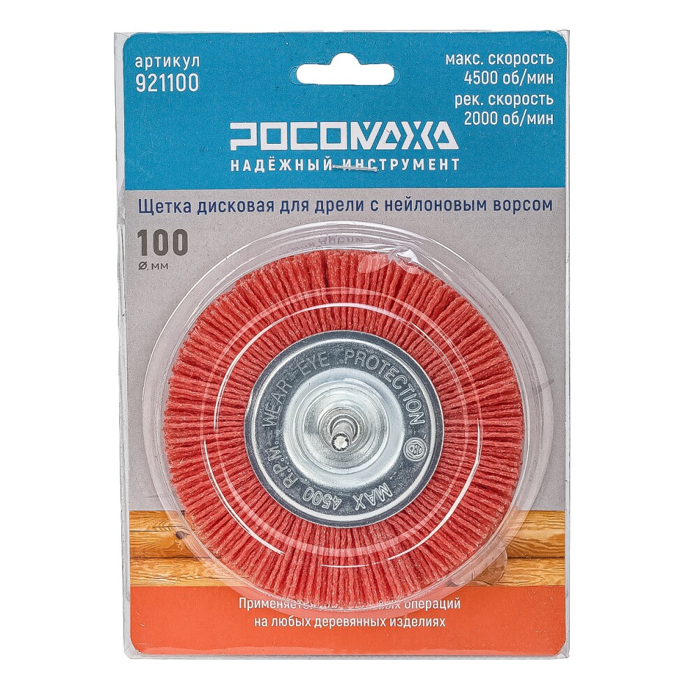 Щетка дисковая для дрели 100 мм с нейлоновым ворсом "РОСОМАХА"