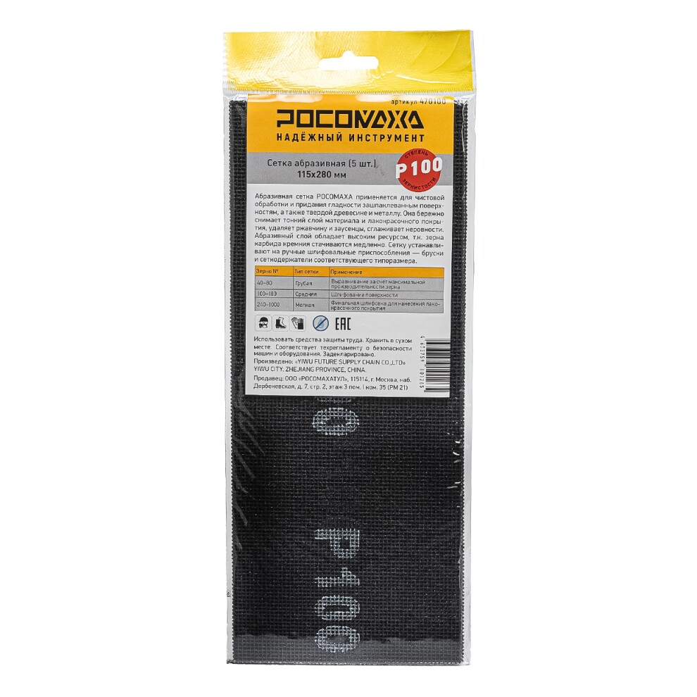 Сетка абразивная (5 шт; 115*280 мм; P 100) "РОСОМАХА"