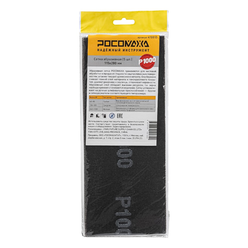 Сетка абразивная (5 шт; 115*280 мм; P 1000) "РОСОМАХА"
