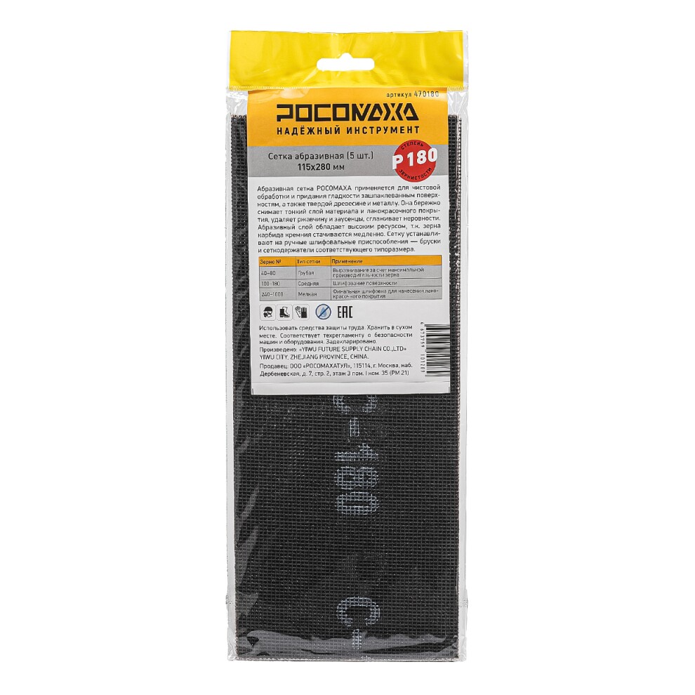 Сетка абразивная (5 шт; 115*280 мм; P 180) "РОСОМАХА"