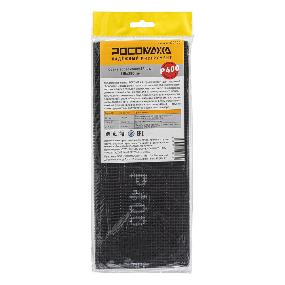 Сетка абразивная (5 шт; 115*280 мм; P 400) "РОСОМАХА"