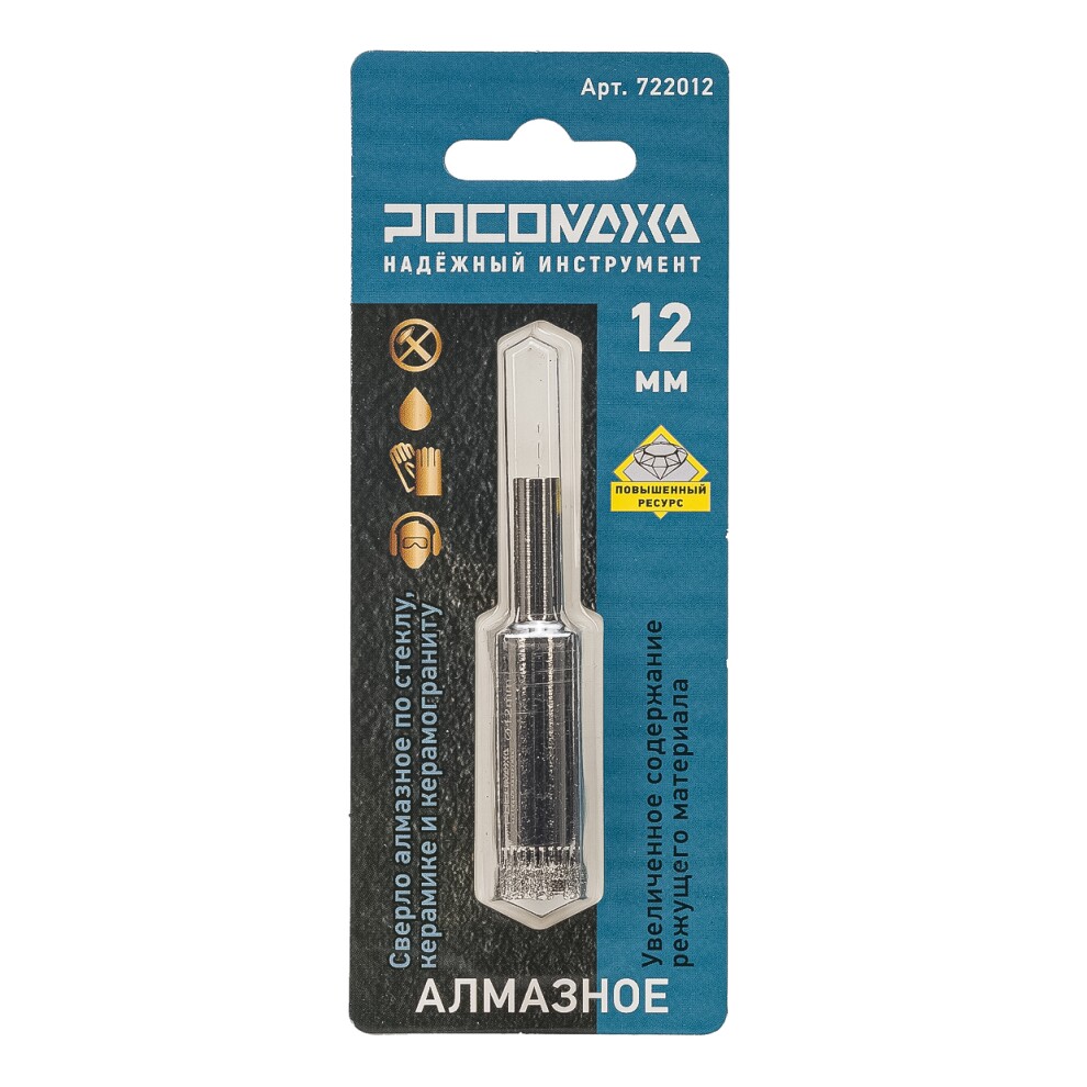 Сверло алмазное по стеклу, керамике и керамограниту 12 мм "РОСОМАХА"