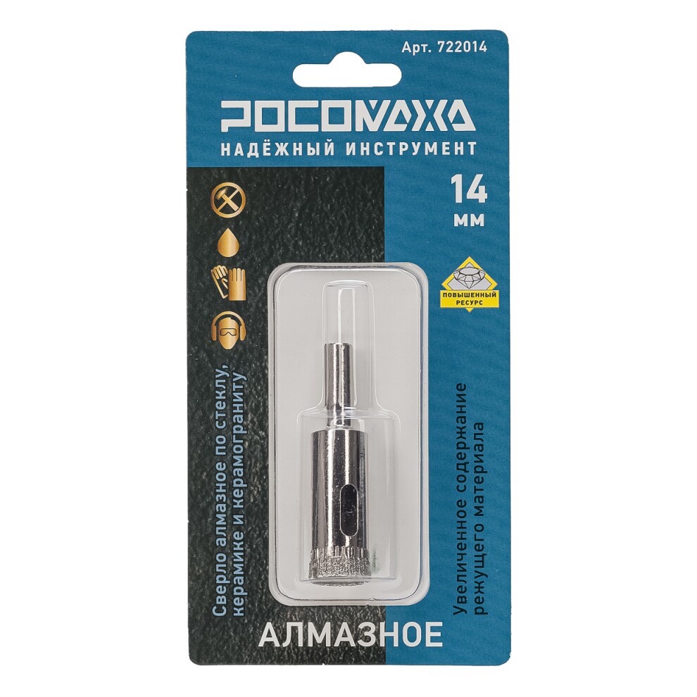 Сверло алмазное по стеклу, керамике и керамограниту 14 мм "РОСОМАХА"
