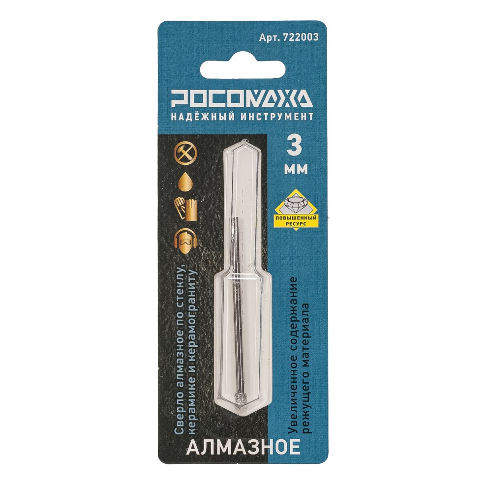 Сверло алмазное по стеклу, керамике и керамограниту 3 мм "РОСОМАХА"